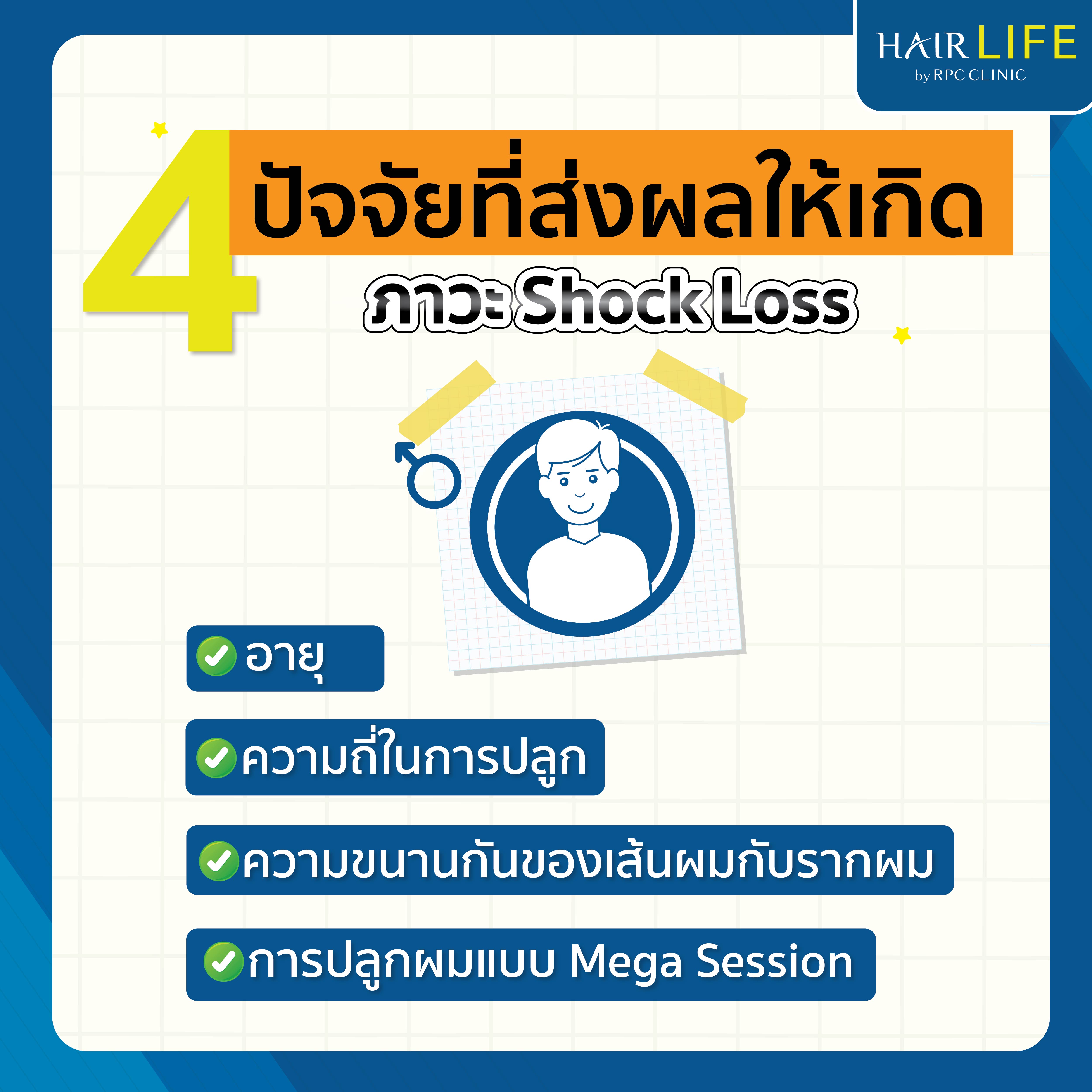 ภาวะ Shock Loss คือภาวะผมร่วงหลังจากการปลูกผมไม่ว่าจะด้วยเทคนิค FUE, DHI, Micrograft ฯลฯ ซึ่งในทางการแพทย์เรียกกลไกนี้ว่า การที่เส้นผมได้รับการรบกวน และขาดสารอาหาร ในบริเวณรากผมที่อาจเกิดขึ้นจากการเจาะหรือปลูก